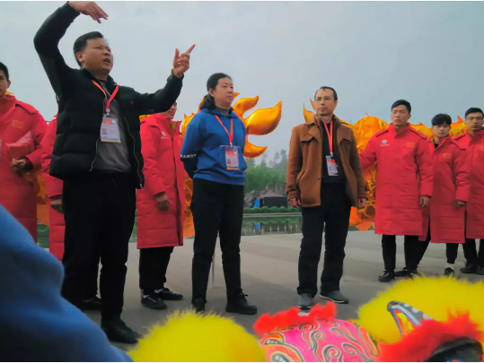 曾志强教练(左)、青云谱区文化馆馆长黄琴琴(中)、江西城南龙灯实业有限公司董事长史克滨(右)现场指导