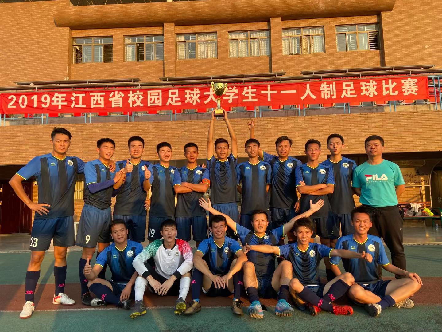 足球队勇夺男子本科乙组冠军,主教练张建伟获得最佳教练员称号,刘勇庆和郭银龙二位同学获得道德风尚奖运动员。