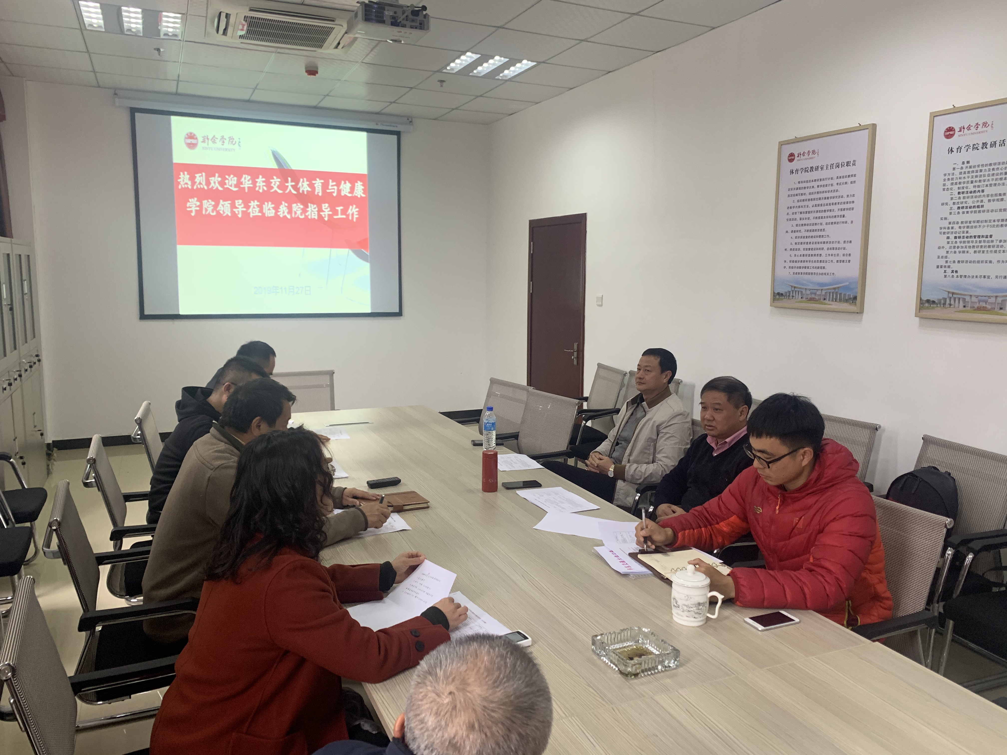 院长王志斌,科研和研究生秘书蔡科老师一行两人来到新余学院对接合作协议,并拜访了新余学院张玉清校长和胡涌副校长,新余学院体育学院院长陈新平、护理与康复学院院长吴玉华等参加了对接。