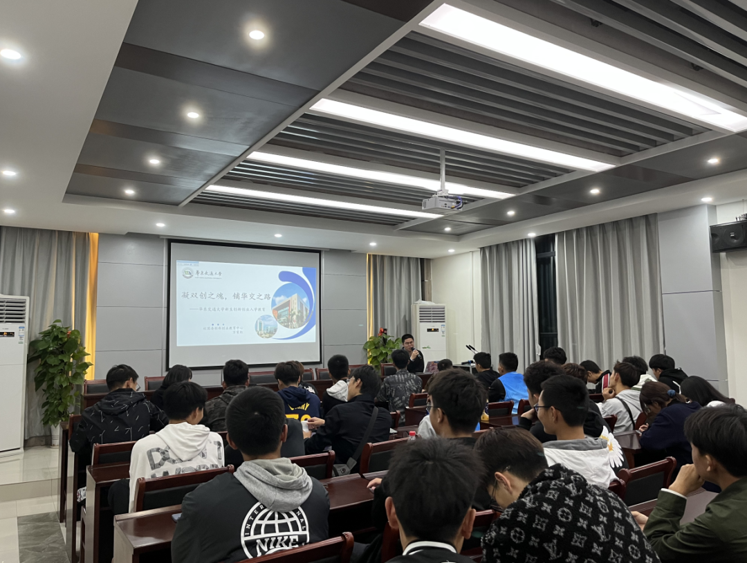 于北区学院一楼会议室开展了以“凝双创之魂,铺华交之路”为主题的创新创业新生入学教育。此次讲座由校团委双创中心委托万家红老师做汇报与分享。