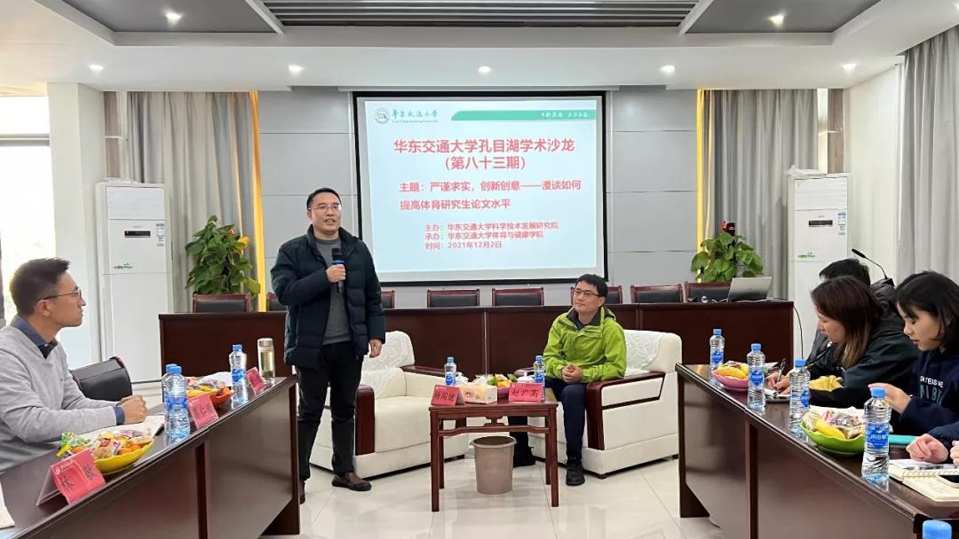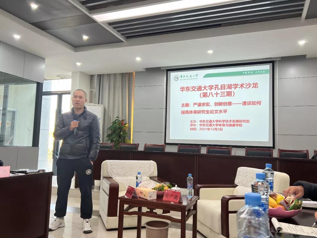 为进一步提高研究生的学术能力与创新意识,拓展学生们的论文写作思维。2021年12月2日星期四下午,孔目湖学术沙龙第八十三期在日本成人影片 会议室顺利举行。本次沙龙特邀南昌大学体育学院副院长、研究生导师赵广高博士为主讲嘉宾,分享学术论文撰写经验。嘉宾分享主题围绕“体育学论文写作常见问题解析”展开,日本成人影片 院长助理杨闯建副教授主持本次学术活动。