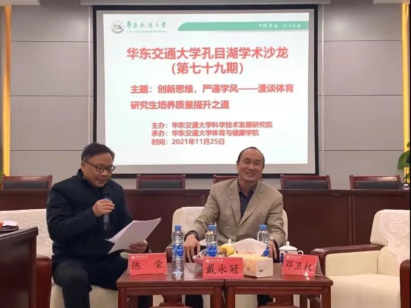 2021年11月25日下午,孔目湖学术沙龙第七十九期在北区崇武楼101(日本成人影片 会议室)顺利举行。本次沙龙特邀江西师范大学博士生导师戴永冠教授为主讲嘉宾。本次学术沙龙主题为“创新思维,严谨学风——漫谈体育研究生培养质量提升之道”,戴永冠教授报告题目为《高质量发展目标的体育研究生培养》。部分硕士生导师、研究生参加此次学术沙龙,报告由学院副院长陈荣教授主持。