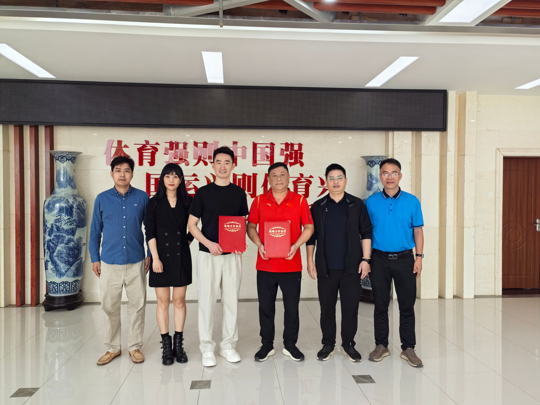 竞赛中心主任张扬、体育专业教学部主任李政、小球教研室主任(校乒乓球队主教练)王剑等参加洽谈会和签字仪式。
