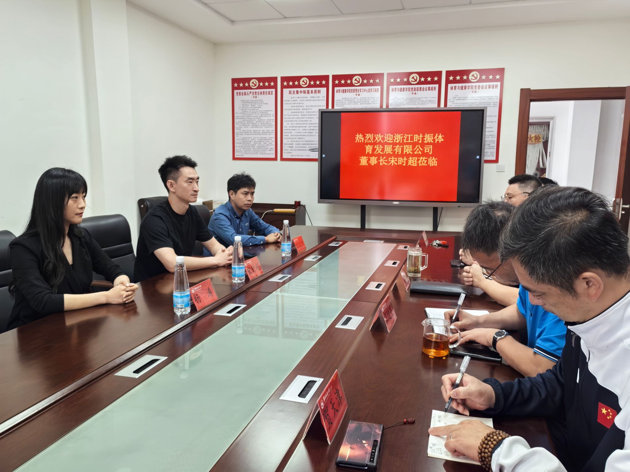 概况,以及专业设置、学科建设、高水平运动队、人才培养、创业就业等情况。宋时超介绍了公司发展历程,以及从运动员转变为体育企业经营者的心路历程,希望与学校在人才培养、创新创业、实习培训等多方面深度融合、共同发展。双方就合作事宜进行了深入交流,并最终签订合作协议。